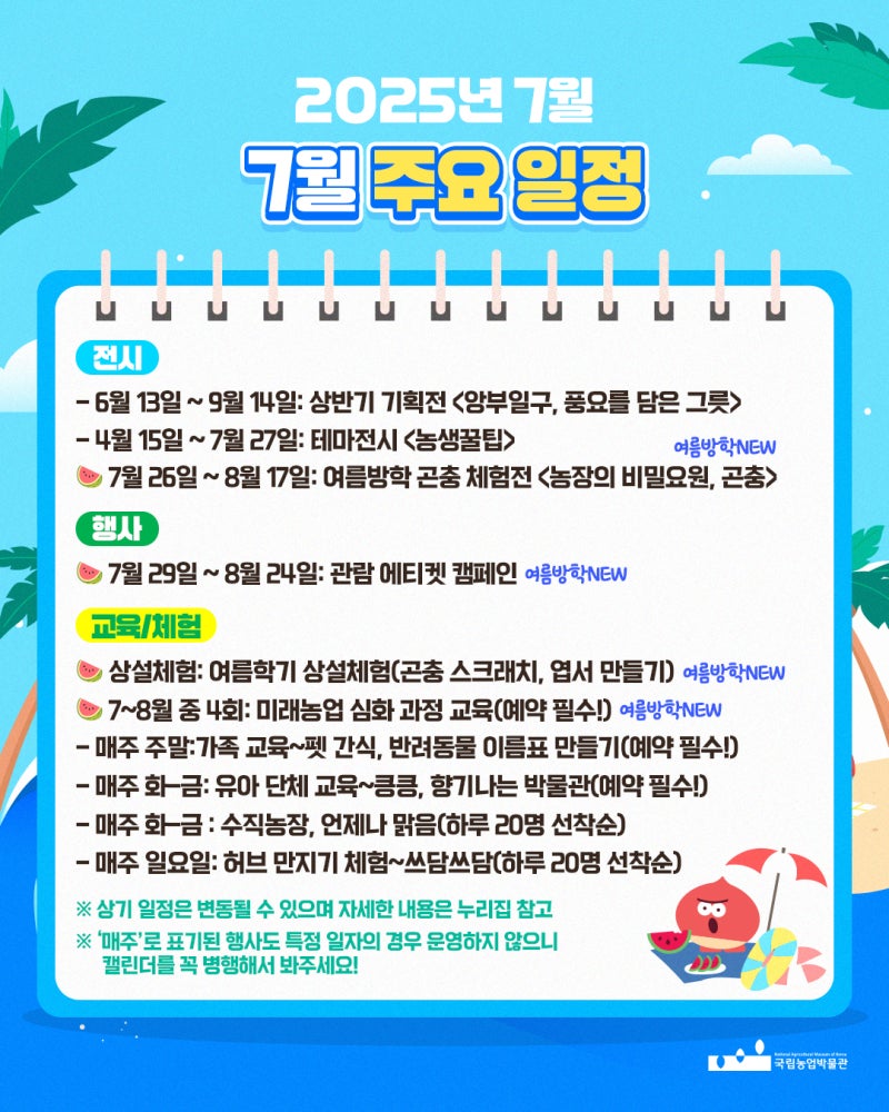 - 특별전 (7/26~): 곤충 체험전 - 농장의 비밀요원, 곤충 🍉NEW